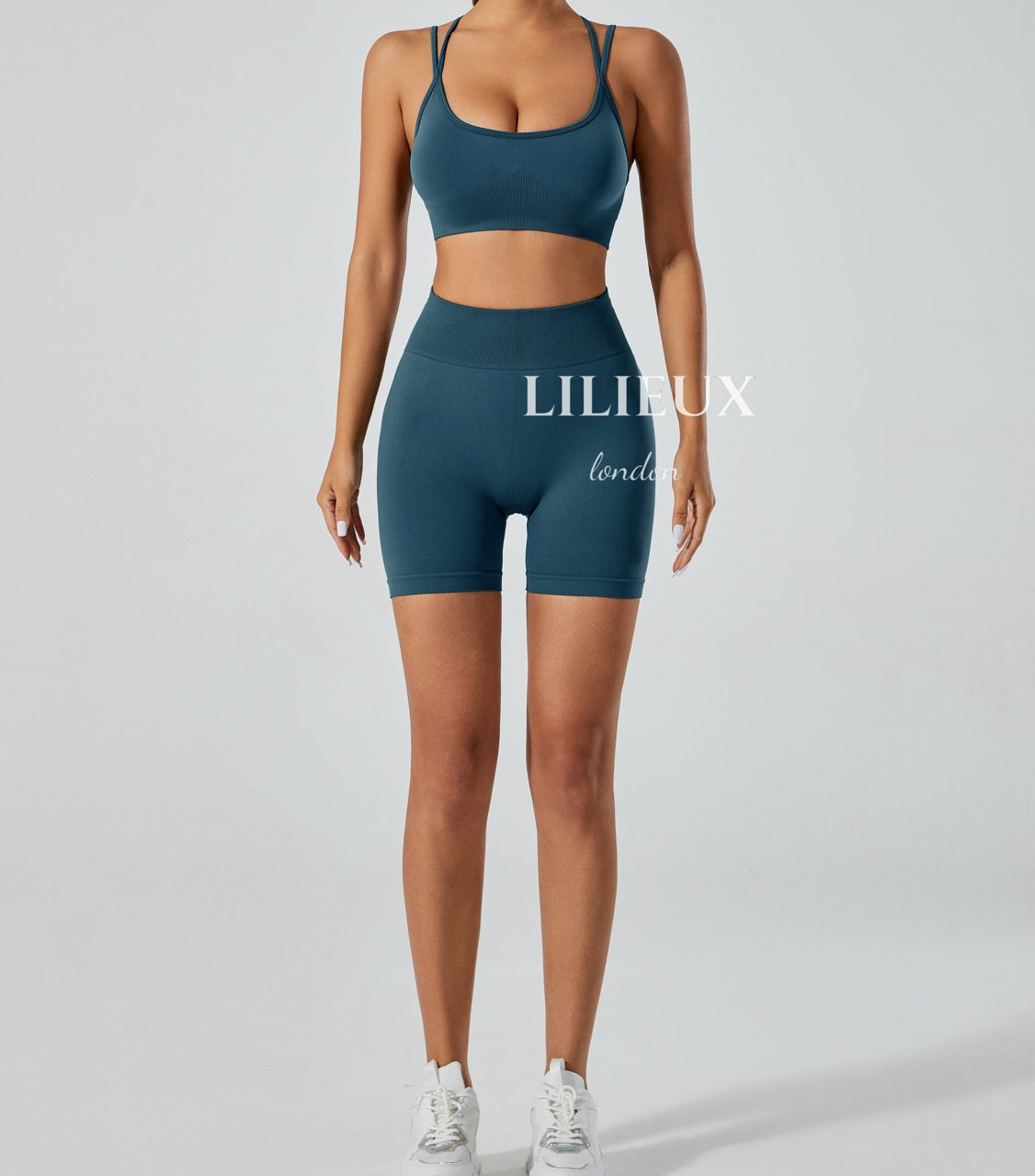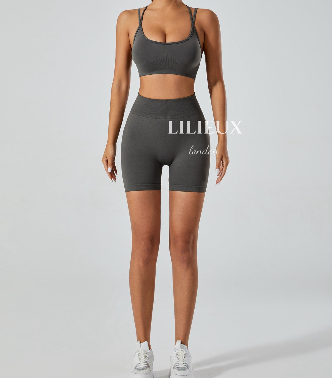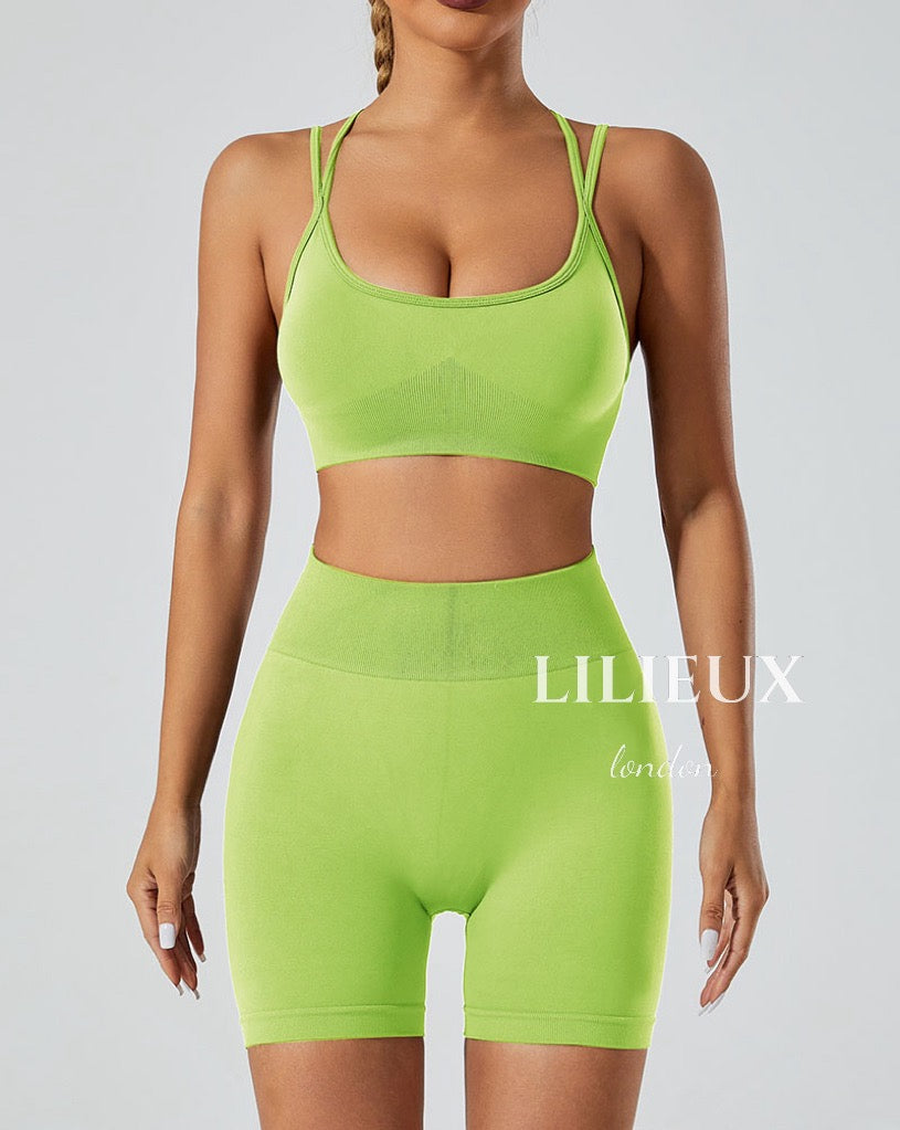 LILIEUX - 2 Piece Tracksuit Set Women's Seamless Running Workout Outfits Yoga High Waist Shorts Leggings with Sports Bra Set