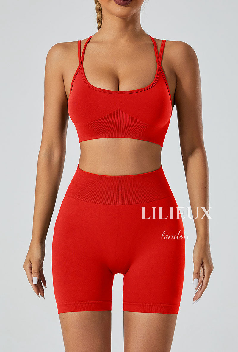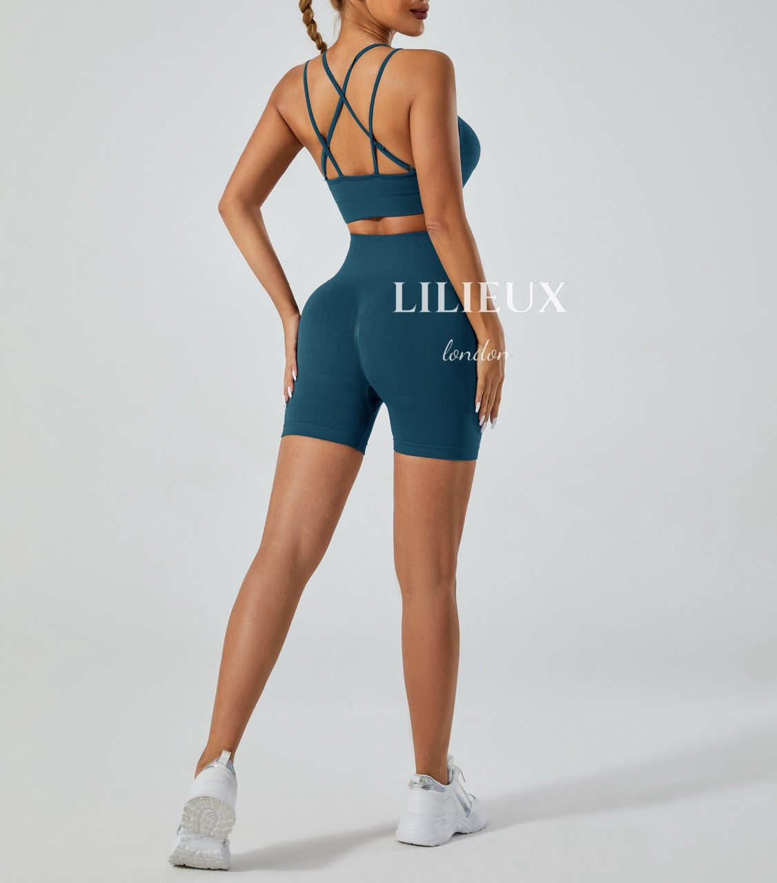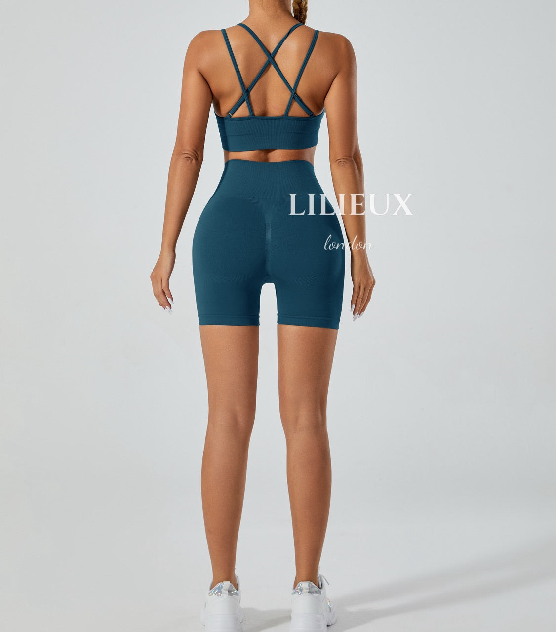 LILIEUX - 2 Piece Tracksuit Set Women's Seamless Running Workout Outfits Yoga High Waist Shorts Leggings with Sports Bra Set